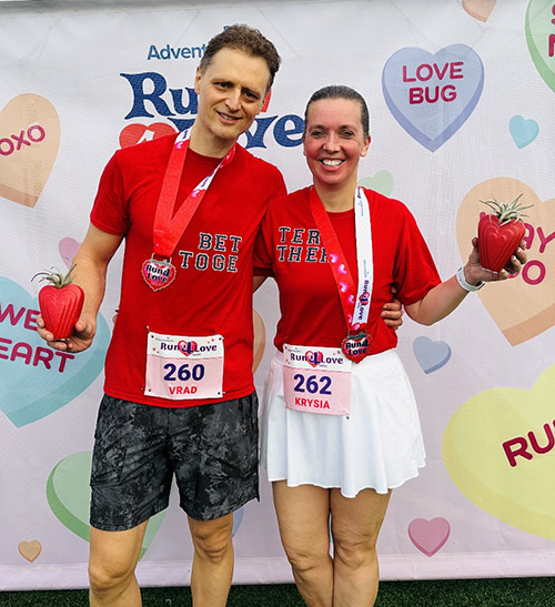Krysia and her husband discovered the Track Shack Running Series Fanatic after moving to Orlando in 2017. Running has long been a shared passion, and the events gave them the perfect way to explore their new city while deepening their bond. One of their favorite traditions is the Run 4 Love 4 Mile, where they wear matching shirts and run side by side before catching up with friends afterward.